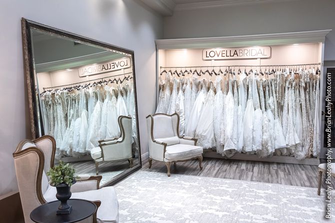 And fortunately Lovella Bridal didn’t look far for its new home: a two-story space sitting across the street from The Americana. In the early stages of a massive renovation project, the building’s developers planned to divvy up the 6,500-square-foot space between multiple restaurants and offices. Lovella leadership, however, offered to take over the entire building.